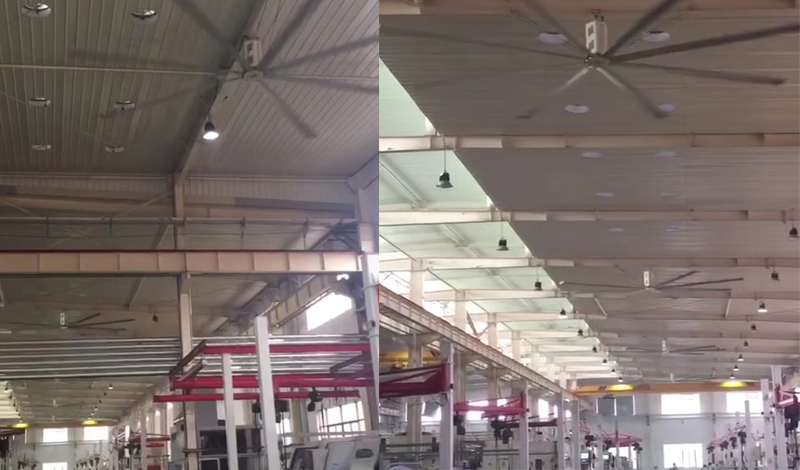 对于设备散热,车间温度高通风差这一难点。工业大风扇很好的解决了这一问题。工业大风扇通过7.3米大直径扇叶搅动气流,气流自上而下流动,形成覆盖面积较广的自然、柔和风,有效降低车间气温3-5℃。同时解决通风除尘等问题。维护员工作业身心健康,提高工作效率。